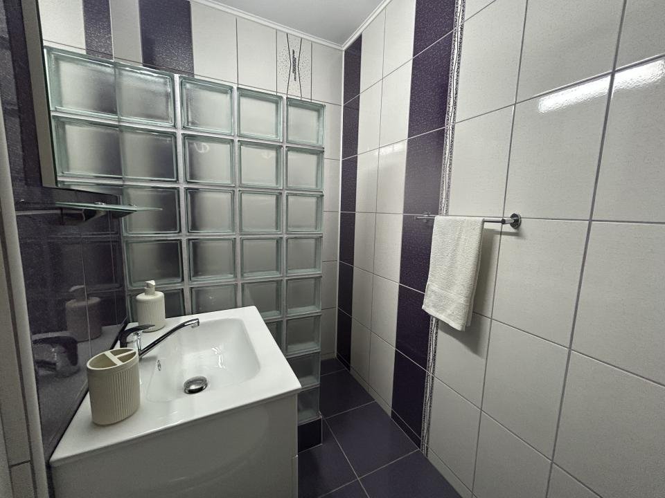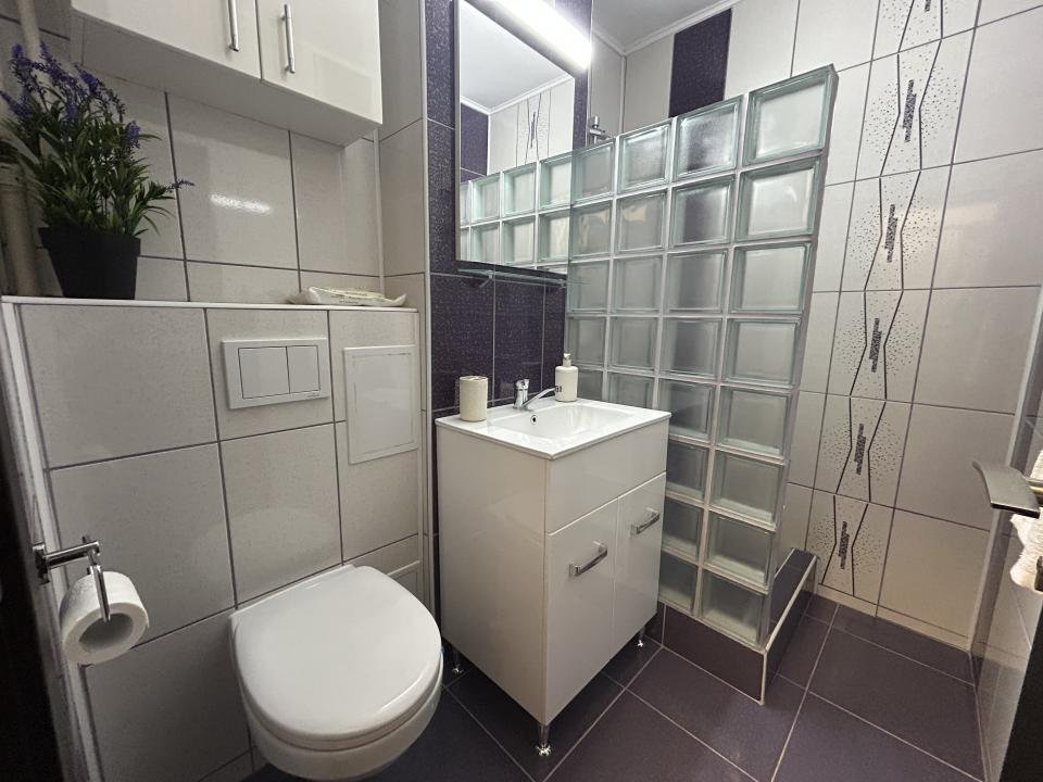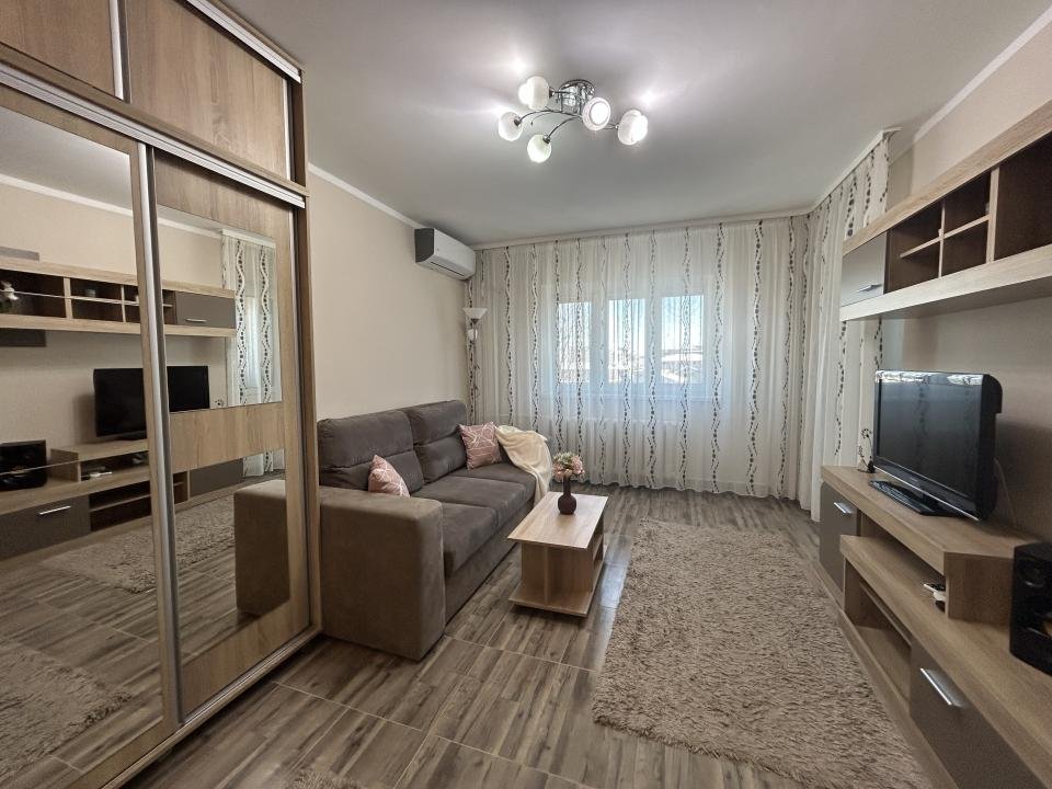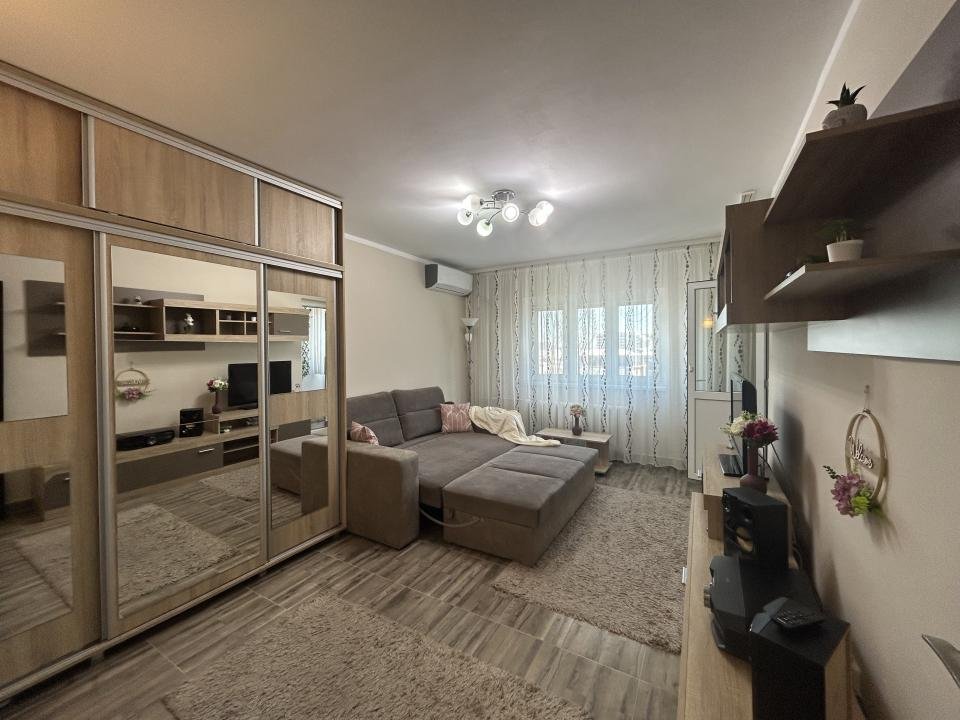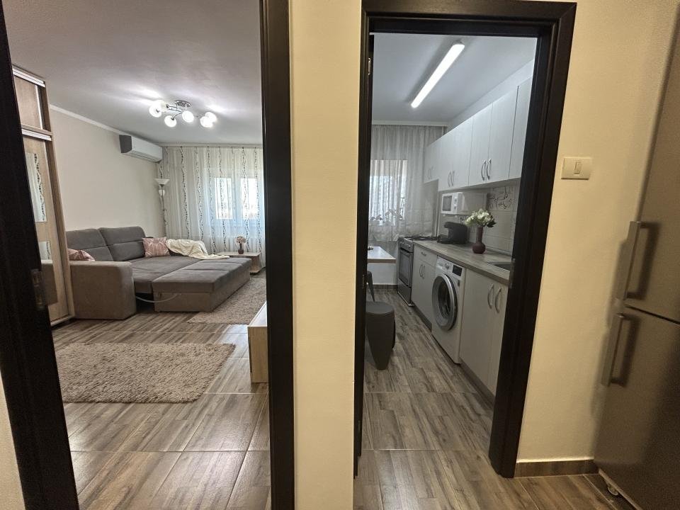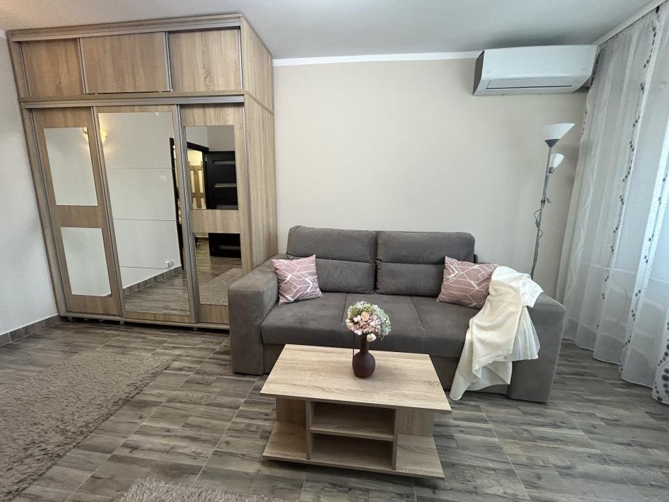 Proaspăt zugrăvita în 2026, garsoniera este curata, luminoasa și mobilata modern, complet utiliata cu electrocasnice în stare foarte bună. Are si aer condiționat pentru confort pe timpul verii precum și jaluzele orizontale, care oferă intimitate și control al luminii naturale.