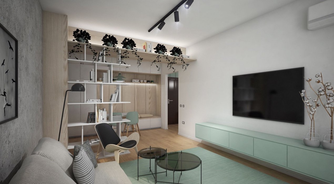 La intrare avem un hol generos din care se intra in toate celelalte incaperi. Livingul este de 22 mp, dormitorul are peste 14 mp, bucataria este aranjata suprb, ca dealtfel toata casa, de catre firma specializata de design interior.