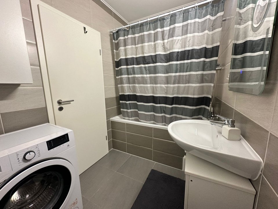 Baie elegantă: modernă, echipată cu tot ce este necesar pentru confortul tău zilnic.