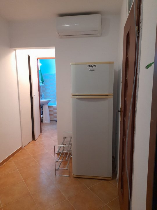 Este recent zugravit si se inchiriaza mobilat si utilat. Sufrageria este echipata cu canapea extensibila, biblioteca, televizor, aer conditionat. Dormitorul are pat matrimonial si un sifonier cu 4 usi. Bucataria este mobilata si echipata cu frigider, aragaz, iar in baie este instalata masina de spalat rufe.