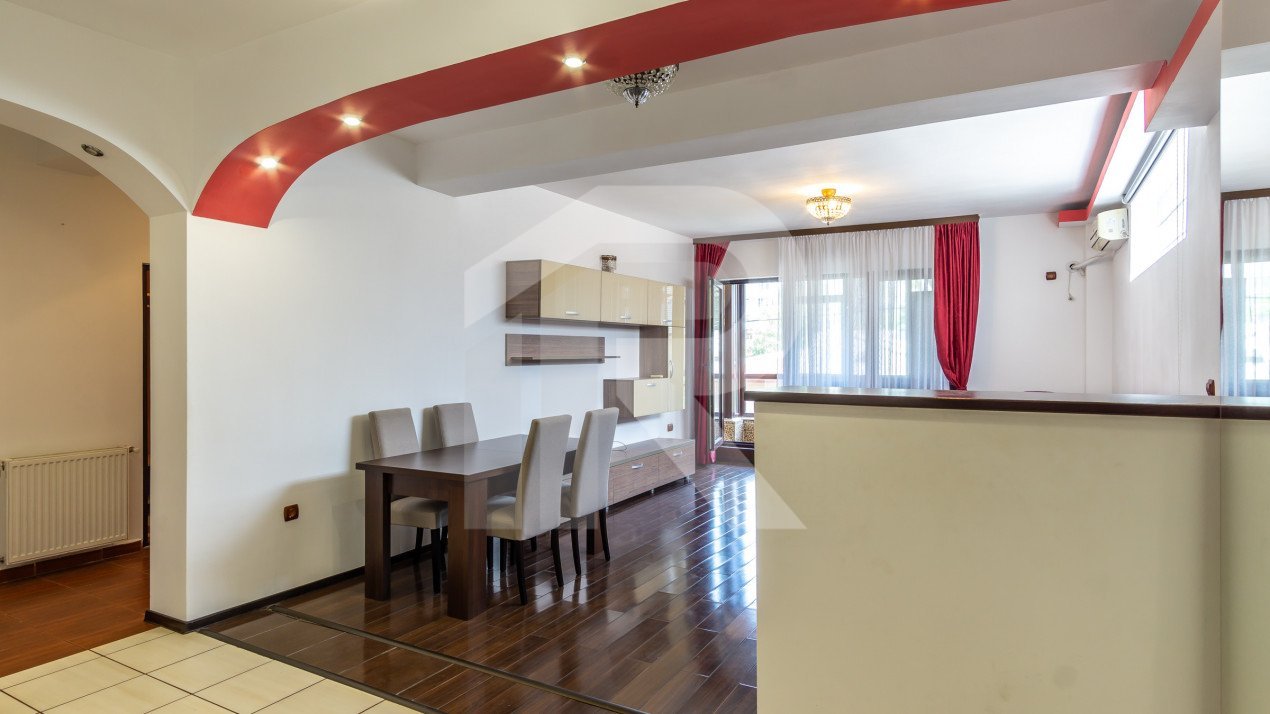 Locuinta se afla la etajul 1 si este complet mobilata si utilata, fiind dotata cu centrala termica pe gaze Ferroli, aer conditionat Whirlpool, combina frigorifica Beko, cuptor electric Whirlpool, plita pe gaze Whirlpool si hota cu ventilatie exterioara, masina de spalat rufe Indesit, tv tip LCD Samsung 108 cm diagonala.
