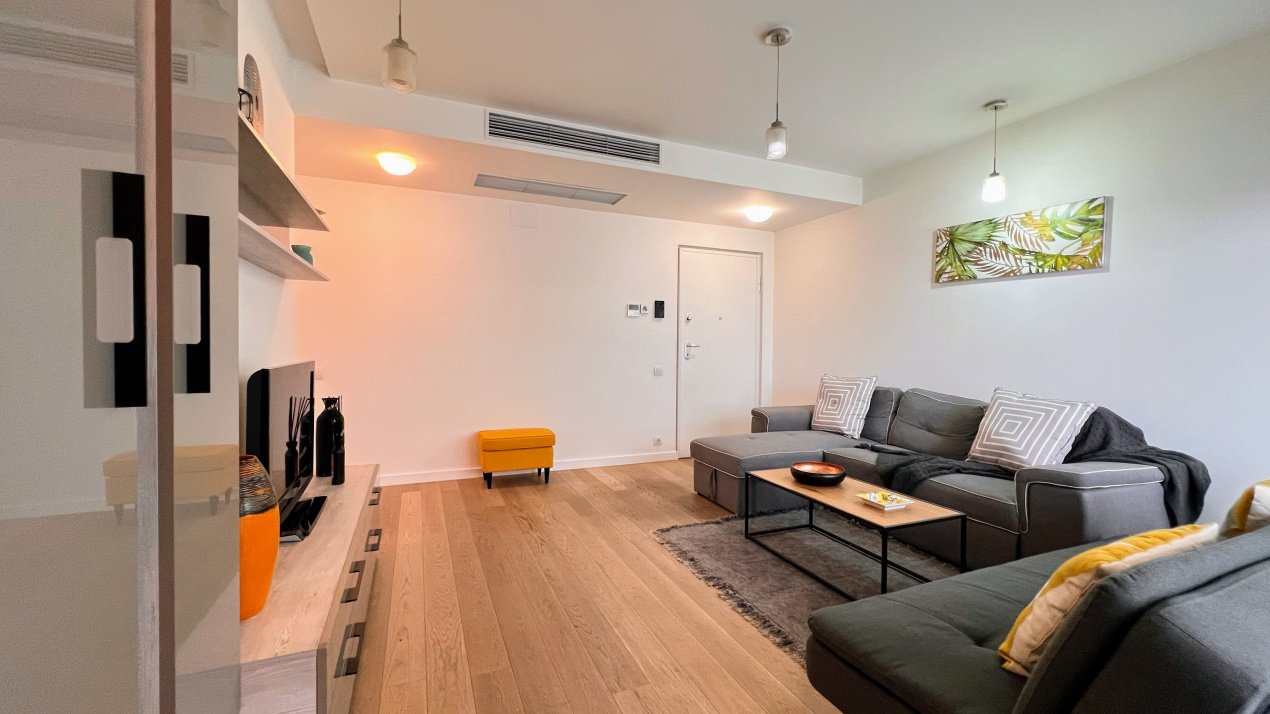 Zona de living este organizată funcțional și primitoare, fiind mobilată cu două canapele comode, dintre care una de dimensiuni generoase, o comodă destinată televizorului Smart TV, spații suplimentare de depozitare și o măsuță de cafea. Întregul spațiu este completat de accente decorative armonios alese, care contribuie la crearea unei atmosfere plăcute și relaxante.