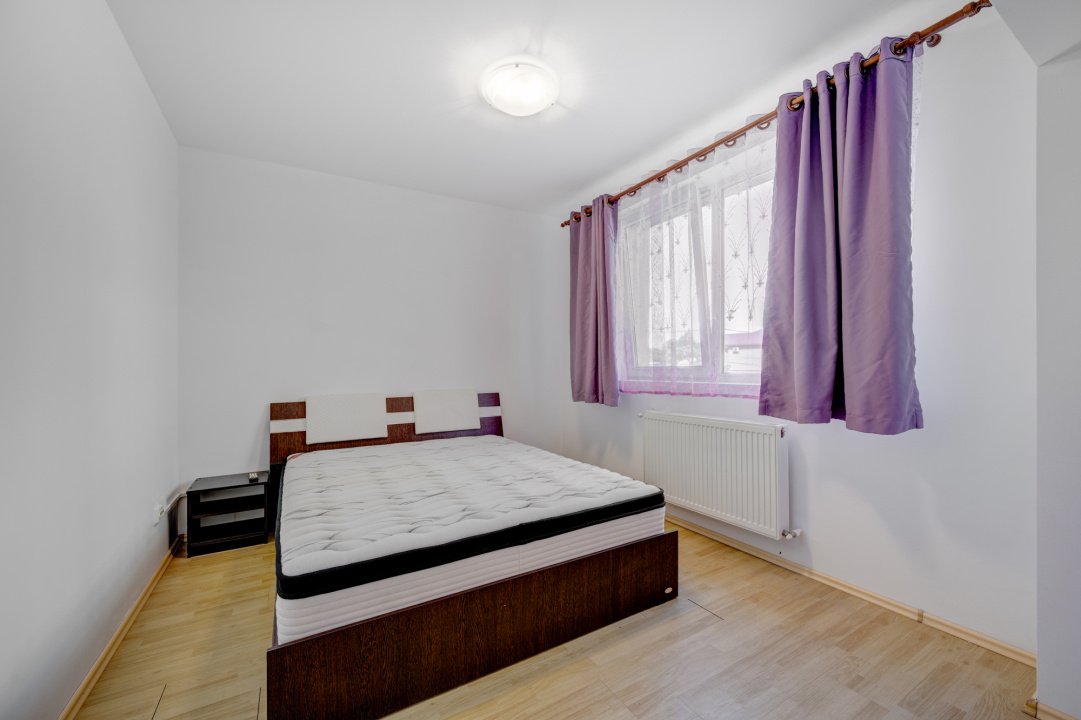 Dormitorul este amenajat cu pat matrimonial, TV si sifonier. Holul de la intrare este amenajat cu dulap pentru haine ( cuier, pantofar).