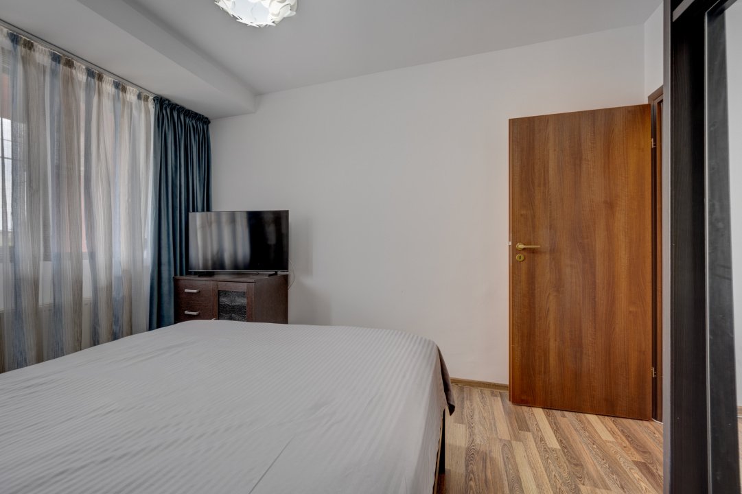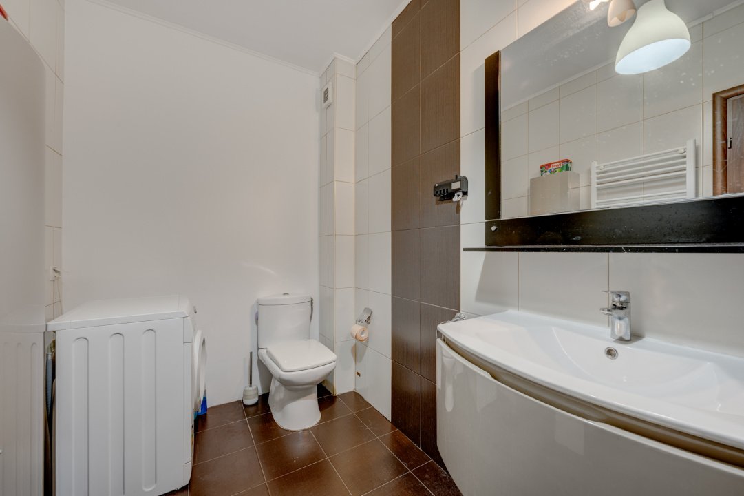 Exista un spatiu de depozitare ( debara), amenajat pentru dressing. Baia este generoasa si este dotata cu toate obiectele sanitare, inclusiv masina de spalat rufe. Dormitorul este amenajat cu pat dublu si o saltea de foarte buna calitate ( 160x200), un dulap pentur haine,  o comoda si 1 TV.