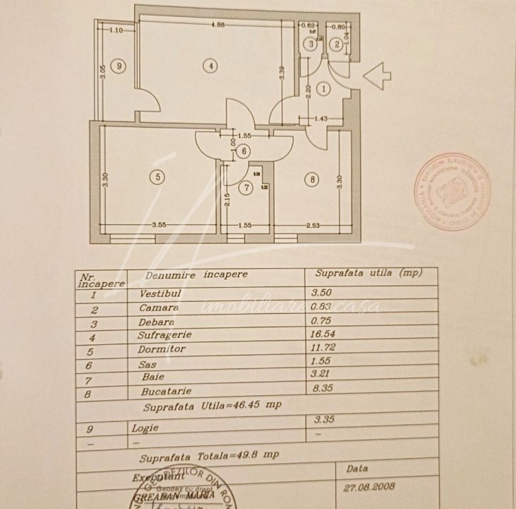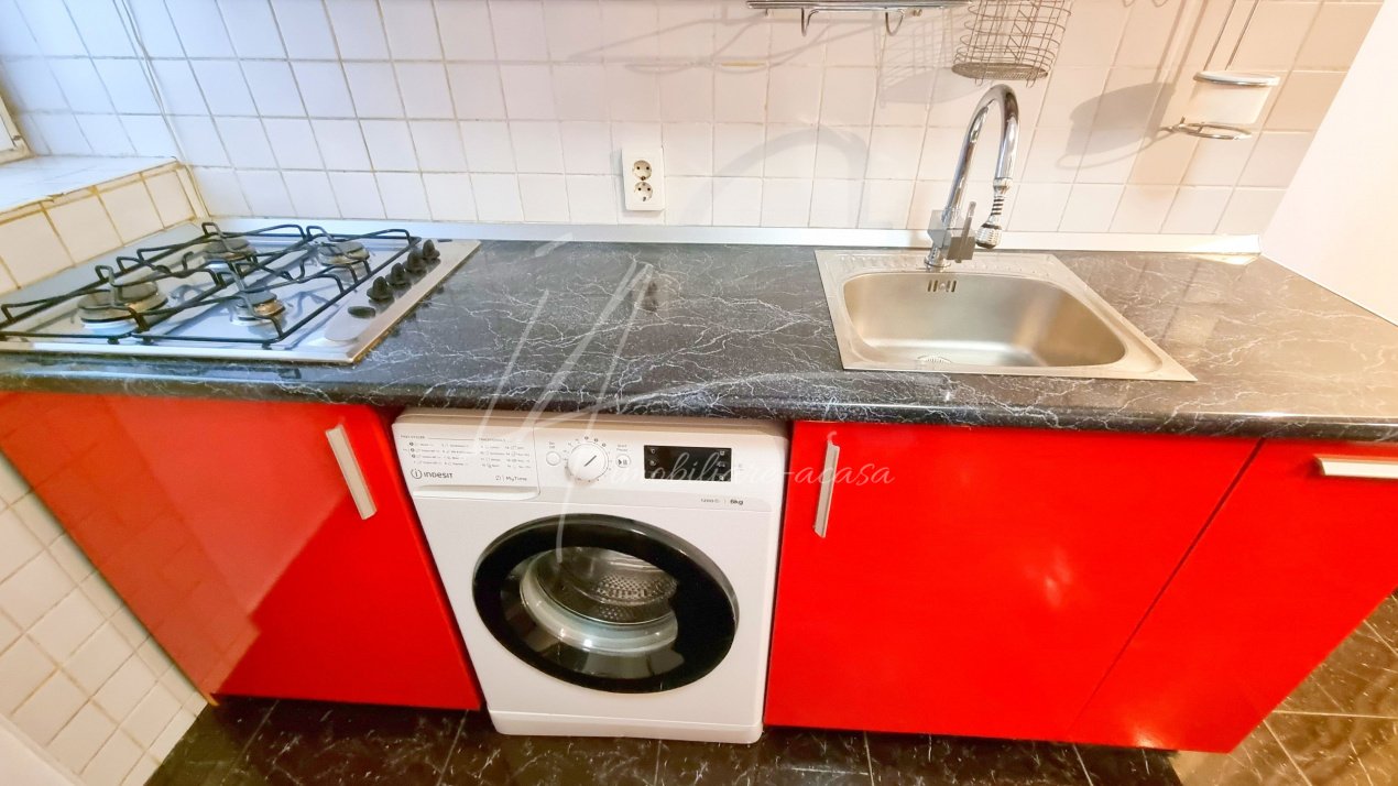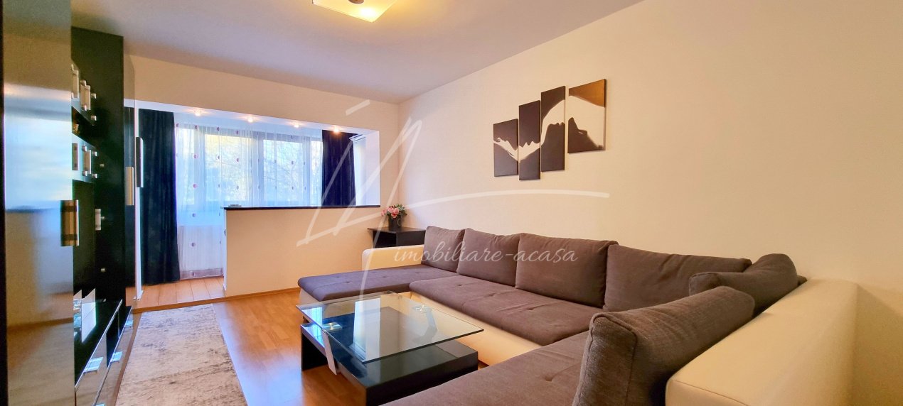 Din holul principal al apartamentului se face accesul catre camera de zi, care este complet mobilata si utilata, incapatoare si luminoasa, cu o suprafata de 16,54 mp ce face legatura mai departe cu logia apartamentului, ce a fost inchisa pentru un plus de spatiu util adus apartamentului. Tot din holul principal se face legatura cu bucataria, care este complet mobilata si utilata cu plita pe gaz, cuptor electric, frigider, hota si o masina de spalat rufe. In continuarea apartamentului se afla dormitorul primitor, complet mobilat si baia, ce are geam si aerisire naturala.