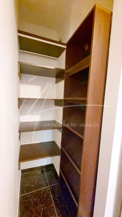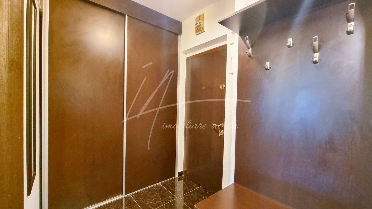 Acest apartament complet mobilat si utilat disponibil pentru inchiriere, este situat la etajul 4 si are ferestrele orientate catre nord si catre vest, spre curtea interioara din spatele blocului si spre aleile cu spatii verzi dintre blocuri, fiind ferit de zgomotul stradal. Este o locuinta placuta, ce ofera intimitate si confort datorita amenajarii armonioase si placute pe care o are, inclusiv a cele doua spatii de depozitare generoase aflate in holul principal de la intrarea in apartament.