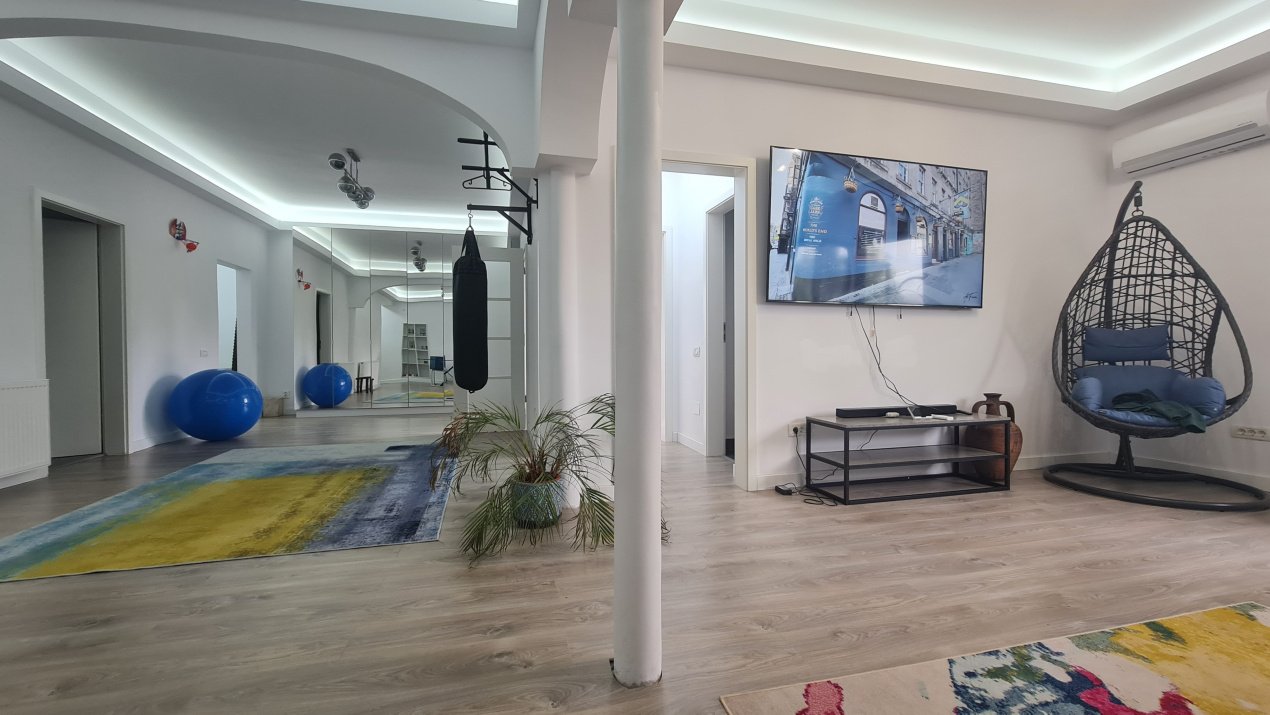•Dotări: televizor mare potrivit pentru prezentări, training-uri sau afișare de portofoliu; conexiuni și prize ușor de adaptat pentru echipamente foto/video sau setup de birou.