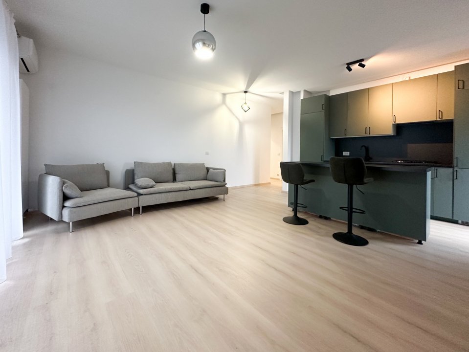 Open space-ul cu bucătăria creează acea senzație de libertate pe care apartamentele compartimentate nu o pot oferi niciodată. Te miști fluid între gătit, conversație și relaxare – totul se întâmplă natural, fără pereți care să îți taie ritmul vieții. Cele 2 aparate de aer condiționat îți garantează confortul indiferent de anotimp. Rulourile exterioare la toate geamurile – cele de la living chiar electrice – îți dau controlul total asupra luminii și intimității. Smart TV-ul LG de 126cm care urmează să sosească va completa imaginea perfectă a serilor de acasă.