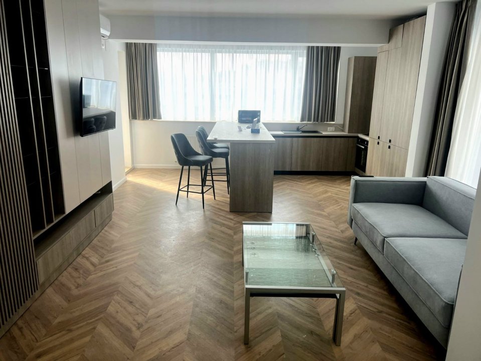 Locuința este mobilată și utilată modern, cu finisaje și dotări actuale, pregătită pentru mutare imediată. Compartimentarea este eficientă, cu living luminos, dormitor confortabil, si bucătărie complet echipată.