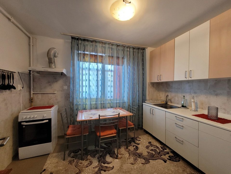 Va ofer spre inchiriere un apartament cu 2 camere confort 1 cu 2 balcoane, la etajul 4, intr-un bloc cu lift, situat in zona TOMIS III - aproape de CITY. Apartamentul este mobilat si utilat, incalzirea se realizeaza cu ajutorul centralei proprii pe gaz, iar racirea cu ajutorul unui aparatat de aer conditionat.