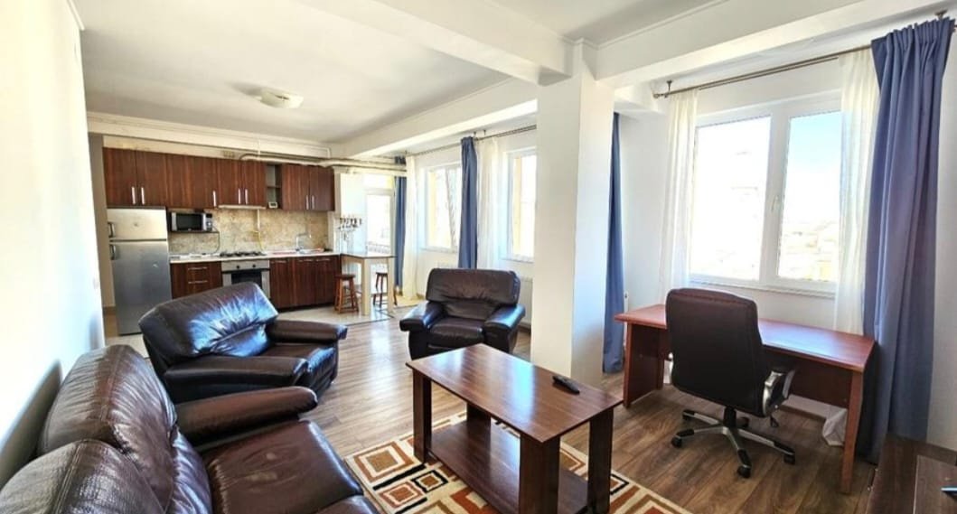 Agenția Experți Imobiliari vă oferă spre închiriere un apartament decomandat cu 2 camere în zona Trocadero, pe termen lung. Cu o suprafață de 65 m², la etajul 2, locuința dispune de balcon, este luminoasă și aerisită, cu camere înalte și open space generos. Apartamentul este situat pe o stradă liniștită, aproape de magazine și transport, oferind vedere plăcută și intimitate. Este mobilat modern și utilat complet, incluzând centrală proprie pe gaz, aer condiționat, mașină de spălat, frigider, plită, cuptor, cuptor cu microunde, televizoare și internet wireless.