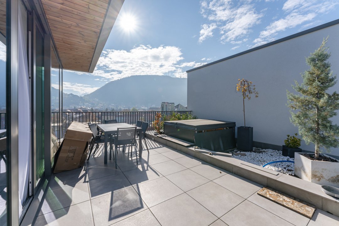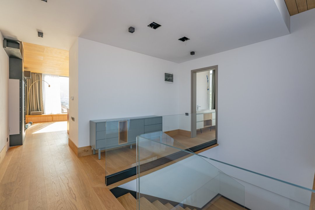 Acest penthouse, dispus pe două niveluri, impresionează prin lumină naturală abundentă, finisaje de top, două terase generoase, jacuzzi privat și o panoramă superbă asupra Muntelui Tâmpa și semnului “Brașov”.