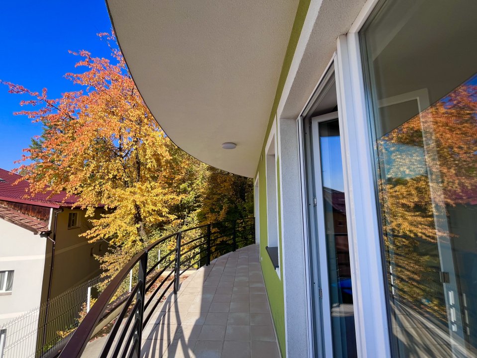 Punctul forte al acestui apartament este terasa de 12 mp, cu priveliște panoramică asupra orașului – locul ideal pentru a petrece seri liniștite de vară sau pentru a savura o cafea dimineața.