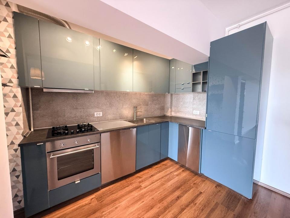 Se închiriază semimobilat: bucătărie complet echipată + un dormitor mobilat; al doilea dormitor poate fi birou.
