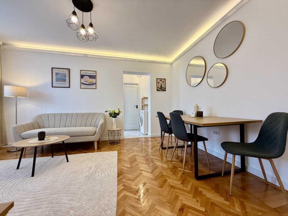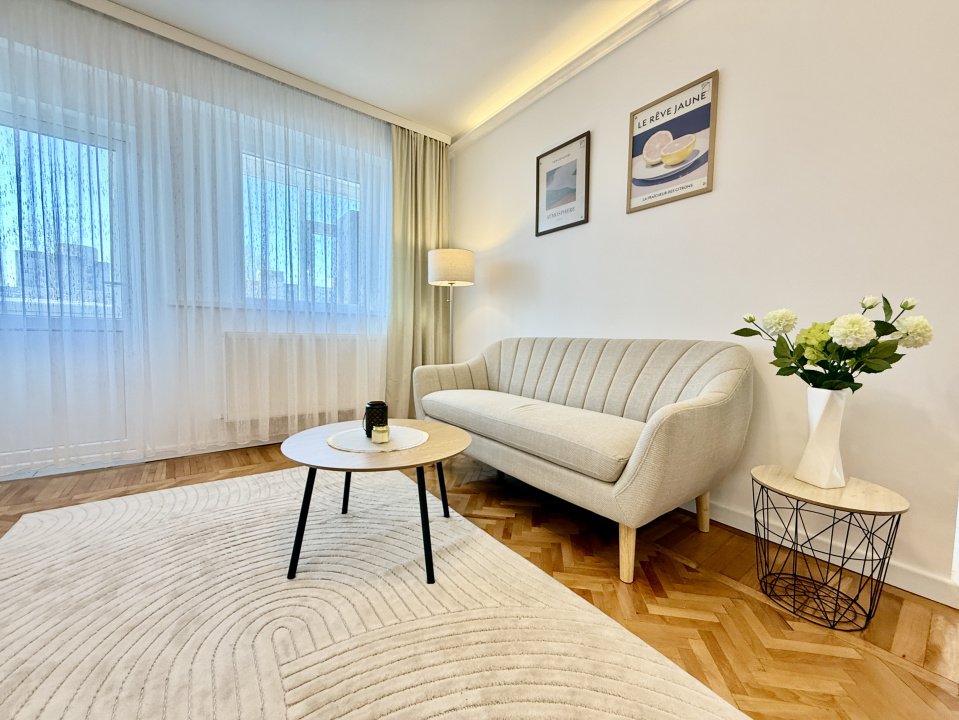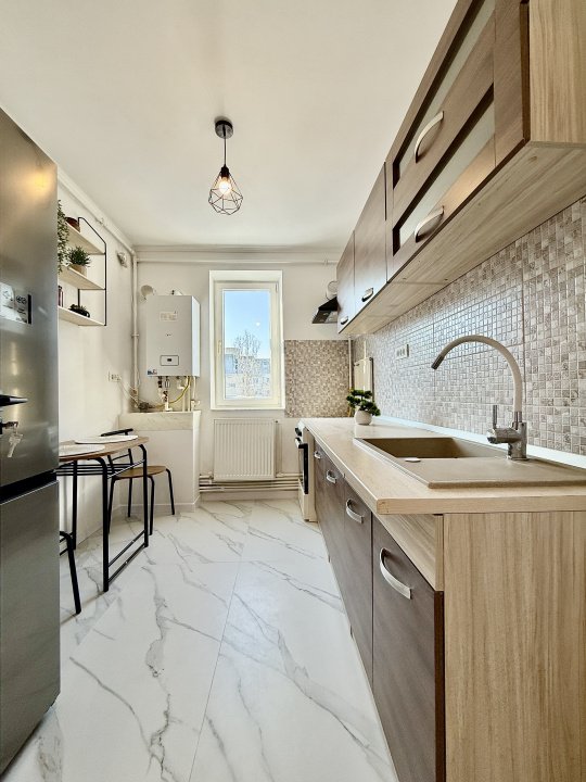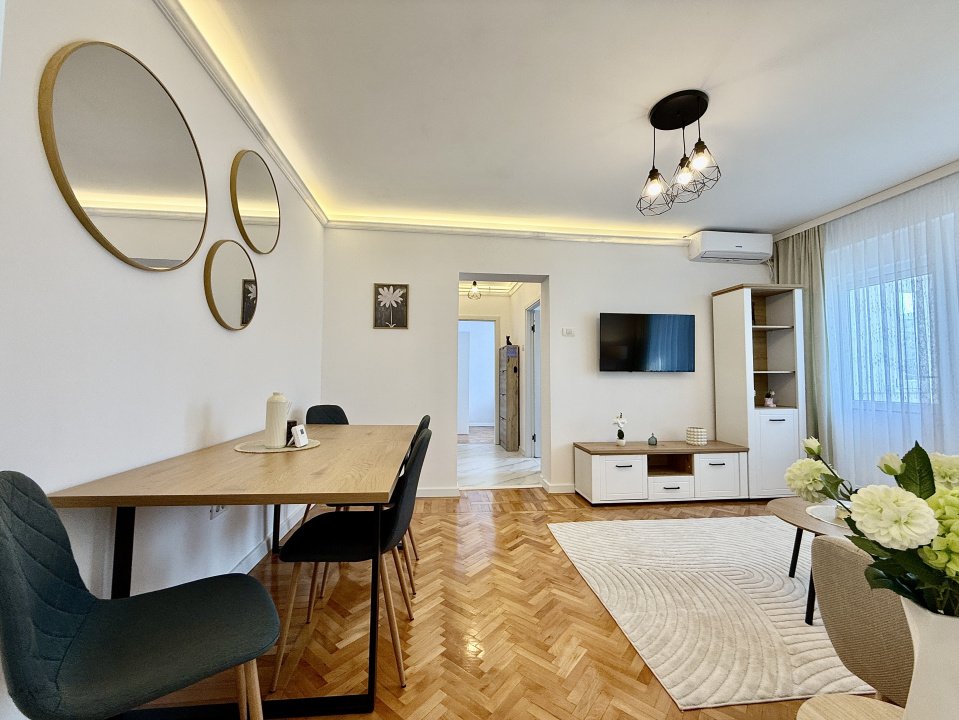 Viitorul chirias va fi primul care il locuieste, totul fiind nou, de la finisaje pana la mobilier. Imobilul este dotat cu centrala proprie pe gaz, două aparate de aer conditionat, și dispune de un balcon care completeaza spatiul de locuit. Un mare avantaj îl reprezinta locul de parcare asigurat chiar în fata blocului, un beneficiu extrem de important in aceasta zona. Apartamentul este pregatit pentru mutare imediata.