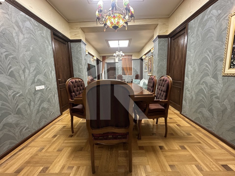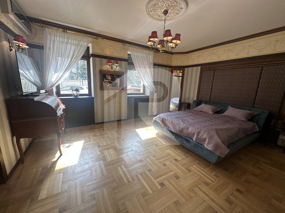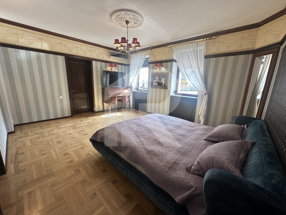 Apartamentul este total mobilat si utilat, are suprafata de 190 mp, 6 camere, 2 camere tip dressing, bucataria cu camara si centrala termica, 3 bai cu fereastra, tavanului este inalt de 3 m, iar balconul transformat intr-o camera-seif.
