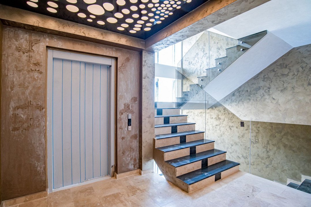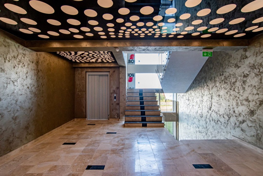 Fatada ventilata, placata cu Alcubond si gresie portelanata.