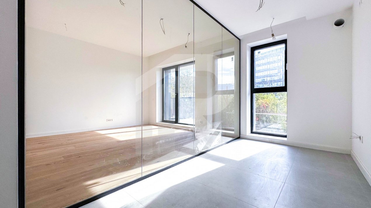 Proiectul dispune de două parcuri private de 15.000 mp, fațade generoase din sticlă, lobby-uri elegante cu recepții și finisaje premium.Acest apartament este situat în Blocul 2B, la etajul 9, cu orientare catre est.