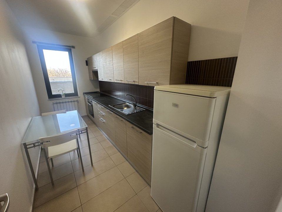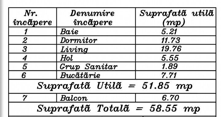 Bucataria inchisa mobilată si utilată, living, dormitor cu baie proprie cu fereastra, si un grup sanitar.