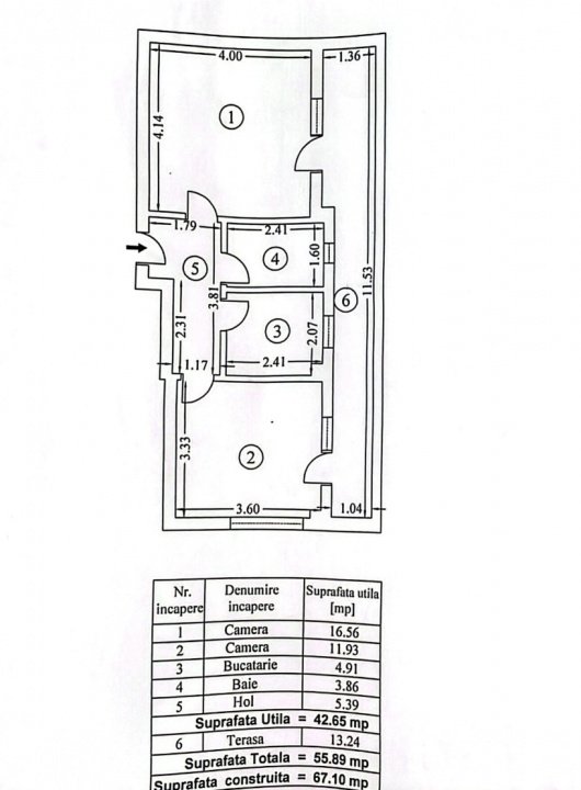 Va prezint spre vânzare un apartament cu 2 camere, decomandat,  situat la etajul 1 intr-un imobil cu regim mic de înălțime , P+2+M, edificat în 2010. Apartamentul , in suprafata total utila de 55,89 mp , este excelent compartimentat și dispune de un balcon generos,  de 13,24 mp, ce poate servi atat ca spațiu de relaxare cât și ca spațiu de depozitare .