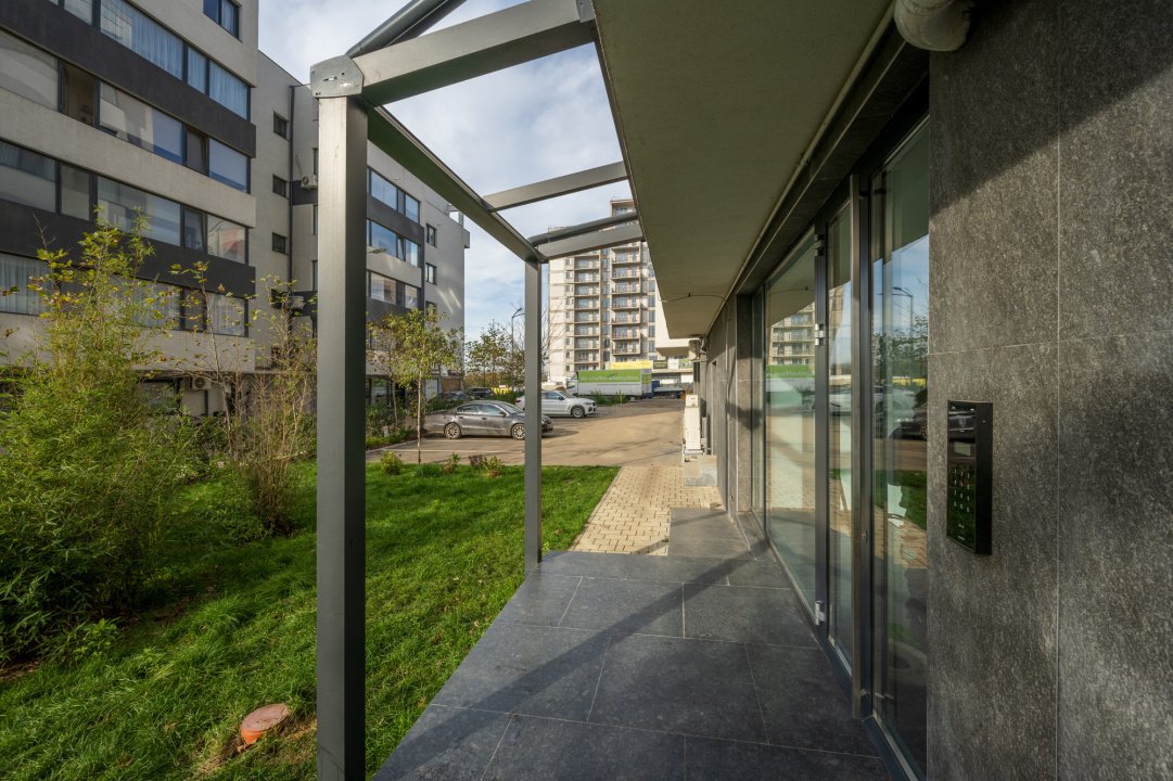 Imobilul are structura din cadre de beton si peretii interiori si exteriori din caramida, termoizolat exterior, cu regim de inaltime p+8 si beneficiaza de 2 lifturi moderne. Parterul imobilului este destinat spatiilor comerciale. Aleea de acces in imobil este amenajata cu spatii verzi iar accesul este securizat.
