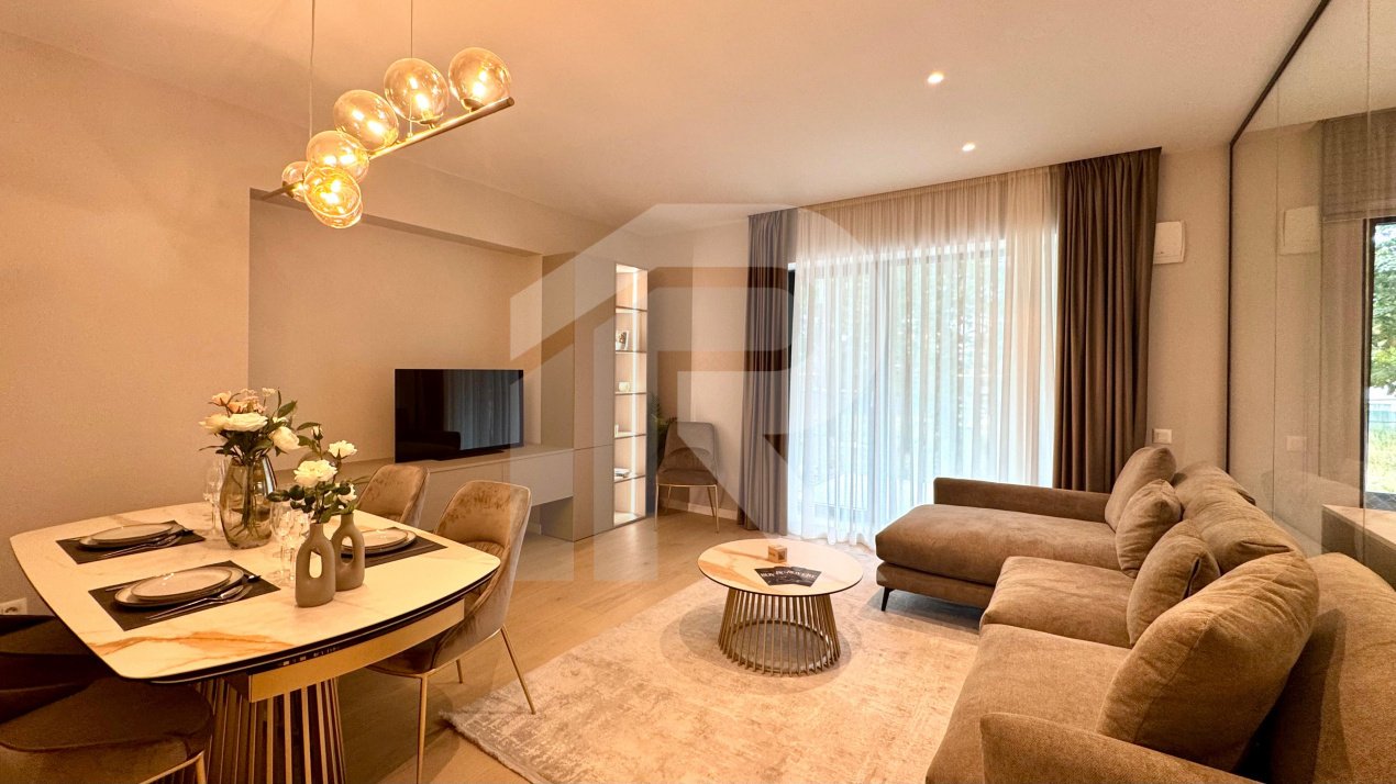 Proiectul oferă un stil de viață rafinat, cu două parcuri private care se întind pe 15.000 mp, fațade generoase din sticlă, lobby-uri elegante cu recepții și finisaje premium. Acest apartament este situat în Blocul 3A, la etajul 1, cu orientare S-E. Este complet decomandat, cu o suprafață totală de 55 mp, inclusiv o terasă de 5 mp - ideală pentru lumină naturală și confort.
