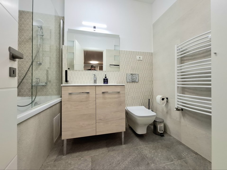 Baie elegantă – obiecte sanitare Geberit & Gala, baterii Grohe