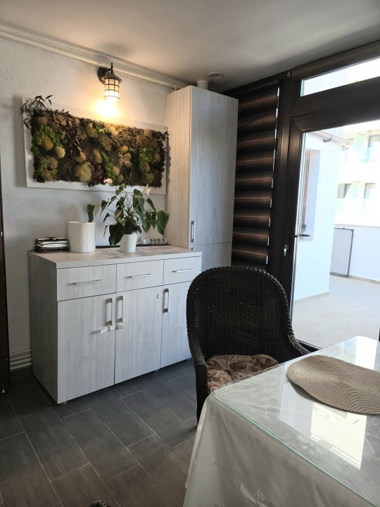 Apartamentul este dotat cu centrală proprie și aer condiționat, iar confortul este completat de un garaj inclus. Se vinde mobilat și utilat complet, fiind pregătit pentru a deveni locuința ta la malul mării.