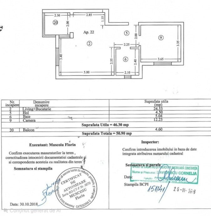 Suprafață totala: 51 mp din care 4,6 mp reprezinta balconul | 🛏️ 1 Dormitoare: | 🛁 1 baie