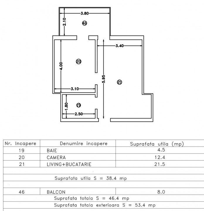 Suprafata utila cu balcon: 46 mp