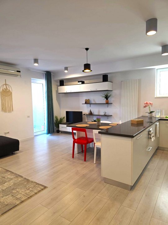 Interiorul este mobilat și utilat complet, gândit pentru confortul zilnic și pentru a răspunde celor mai înalte așteptări. Fiecare detaliu aduce un plus de eleganță, transformând locuința într-un spațiu gata de locuit sau de închiriat.