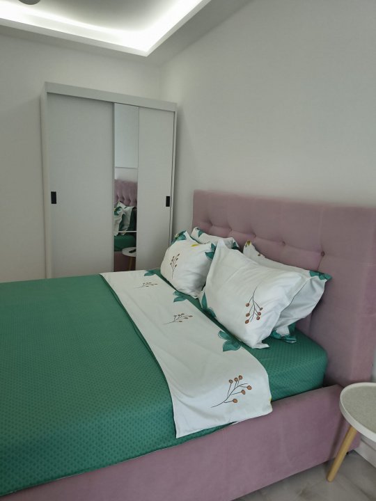 Agenția Experți Imobiliari vă oferă spre achiziție un apartament cu 2 camere, situat la etajul 5 din 6, într-un bloc nou, dat în folosință în anul 2024, dotat cu lift. Apartamentul este orientat frontal către mare și se vinde exact ca în fotografii, complet mobilat și utilat modern, cu electrocasnice noi. Suprafața utilă este de 41 mp, la care se adaugă un balcon de 8 mp. Proprietatea beneficiază de loc de parcare în interiorul complexului, interfon cu cameră video, acces în apartament prin yală smart, aer condiționat smart, senzori de fum și finisaje moderne. O locuință ideală atât pentru rezidență, cât și pentru investiție.