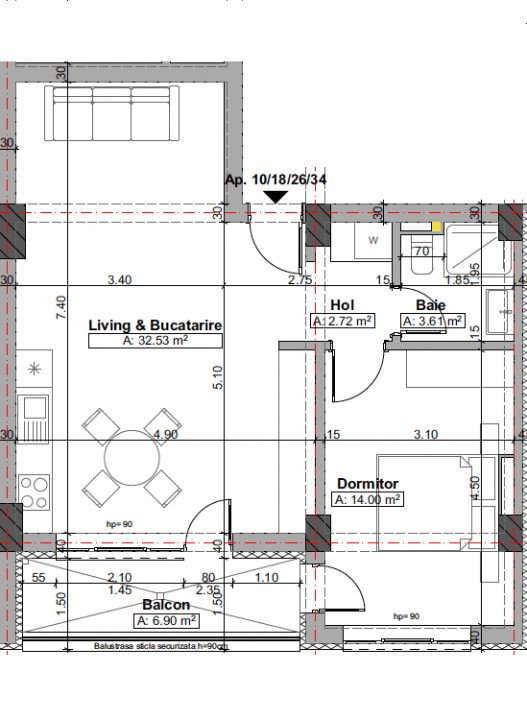 Suprafata balcon: 6,90 mp