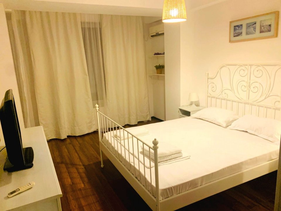 Situat la etajul 5, spațiul oferă intimitate și panorame spectaculoase. Bucătăria închisă, perfect delimitată, aduce funcționalitate, iar mobilierul și dotările moderne creează un ambient primitor. Centrala pe gaz asigură independență și eficiență în orice sezon.