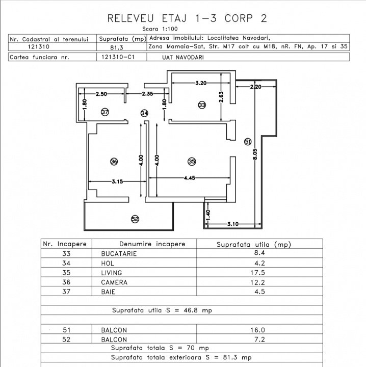 Apartamentul este decomandat, cu bucataria inchisa, mobilat si utilat complet, recent, neutilizat pana in prezent, are o terasă de 22 mp cu vedere spre Lacul Siutghiol și către Mare.