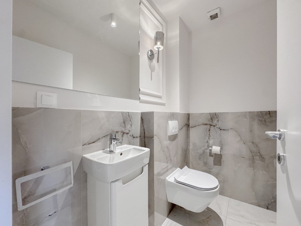 Aveți ocazia de a vă achiziționa un apartament cu 2 camere, cu parcare proprie, situat la parter inalt, acest apartament are avantajul spațiului generos și al compartimentarii funcționale! Se preda exact ca in poze, complet mobilat si utilat, cu mobilier premium Eichholtz, Rovere, Mobexpert, rulouri de aluminiu pentru intimitate sporita si suprafete vitrate mari si luminoase.