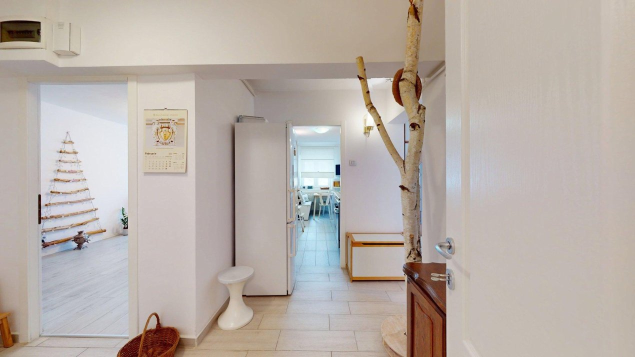 Apartamentul, compus din 3 camere, este decomandat și mai are în componența sa arhitecturală, două băi, un balcon de 2 mp., bucătărie închisă, hol de acces, spații de depozitare. De asemenea, odată cu vânzarea proprietății, se predă și locul de parcare, situat în curtea interioară a imobilului, aflat sub contract de închiriere de la ADP, loc poziționat în imediata apropiere a intrării secundare în imobil.