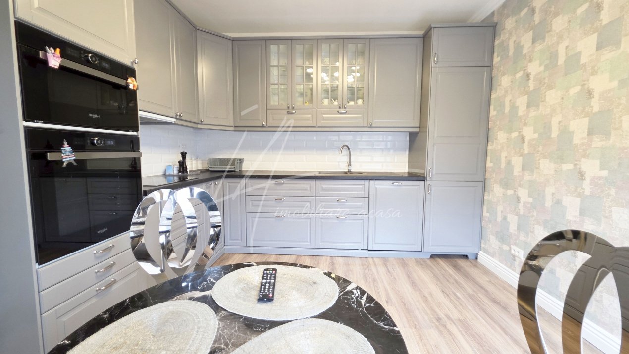 Două dormitoare spatioase si doua bai moderne completeaza aceasta oaza de liniste si eleganta. Holul imens cu dulapuri tip dressing iti asigura spatiu de depozitare si organizare perfecta, in timp ce bucataria mobilata si utilata complet te inspira sa creezi cele mai rafinate preparate culinare.
