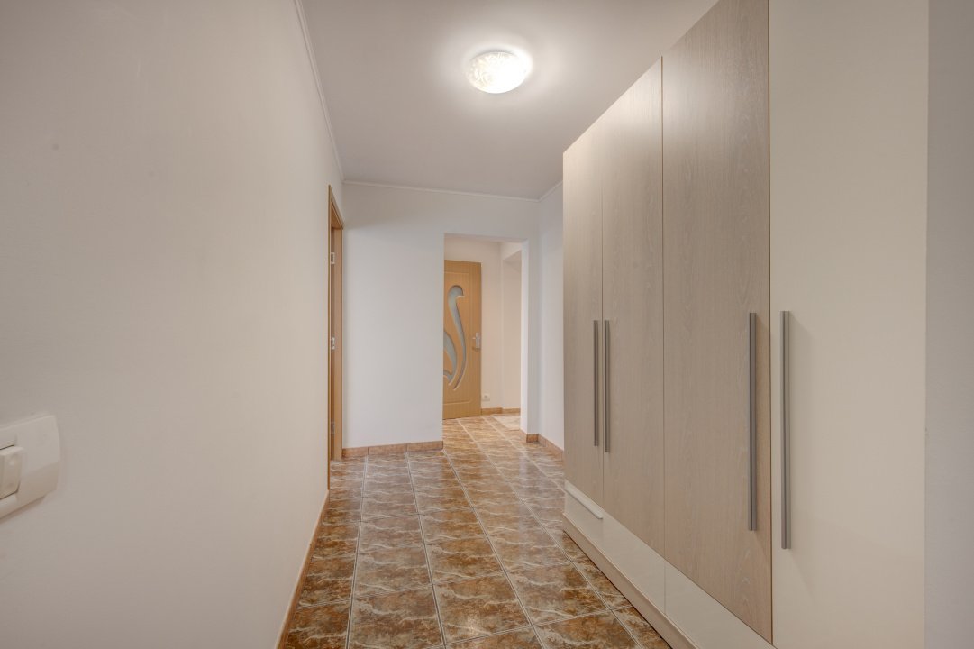 Initial, apartamentul era semidecomandat si sufrageria era camera de trecere spre cele 2 dormitoare. Dar, pentru a fi mai practic, sufrageria a fost separata de hol cu un perete de rigips. Astfel, avem acum un apartament decomandat si un hol spatios, in care ai loc pentru spatii de depozitare.
