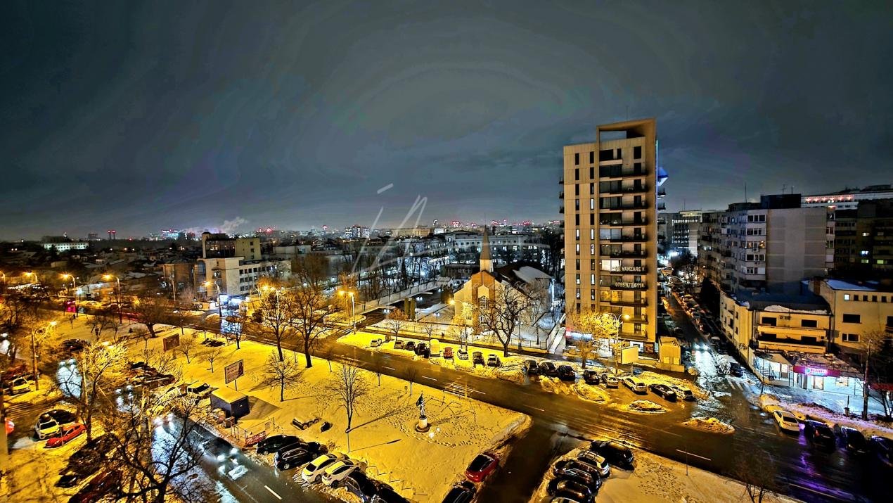 Faptul ca apartamentul este la ultimul etaj al blocului (acoperit in proportie de 50% de spatiile administratiei) nu confera disconfort din punct de vedere al hidroizolatiei iar zgomotul stradal este estompat corespunzator. Privelistea insa face toti banii!