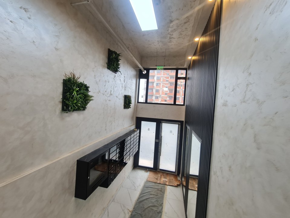 Blocul dotat cu lift Shindler, zona amenajata de lobby, balustrade metalice si illuminat cu automatizare si senzori de miscare pe holuri si casa scarii.