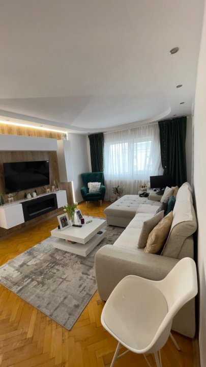 Apartamentul este izolat termic atât la exterior, cât și la interior, are multiple îmbunătățiri și se vinde complet mobilat și utilat. Compartimentarea este eficientă și include sufragerie spațioasă, două dormitoare, bucătărie open-space cu bar și balcon închis. Imobilul este dotat cu mobilier de calitate, dressing pe hol, șemineu pe bază de biocombustibil, canapea extensibilă, mobilier de bucătărie, centrală termică pe gaz, plită pe gaz și baie recent renovată, cu cadă freestanding și WC încorporat.