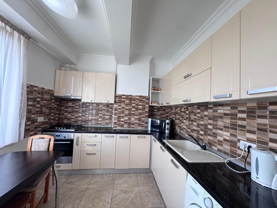 Locuința este complet mobilată și utilată, dispune de centrală termică pe gaz, două grupuri sanitare și o terasă spațioasă, perfectă pentru momente de relaxare, cu o priveliște deosebită. Apartamentul este format din două dormitoare luminoase, living generos, două băi și spații de depozitare bine gândite.