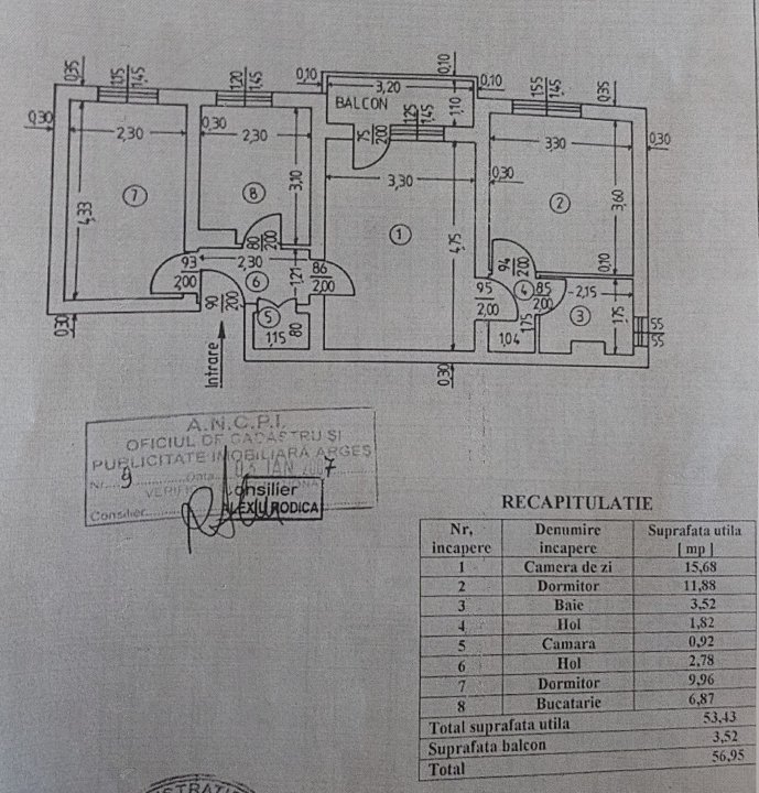 Suprafata totala: 56,95 mp