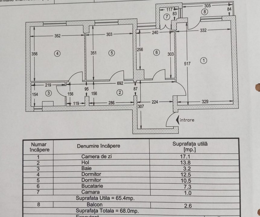 Apartamentul necesită îmbunătățiri, oferind posibilitatea de a fi amenajat după propriul gust.