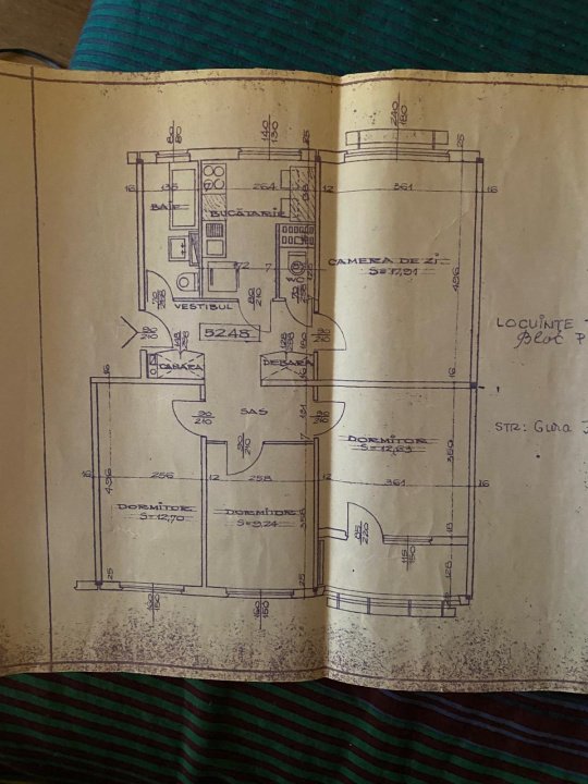 La baza avem 1 baie cu geam exterior + 1 grup sanitar (la grupul sanitar s-a renuntat insa se poate repune in functiune fara probleme), 1 sufragerie de 18mp, 2 dormitoare de ~13mp, 1 dormitor de 9mp, 1 bucatarie, 2 holuri spatioase si un balcon. Dispunem de geamuri termopan de calitate cu 5 camere, instalatiile de la calorifere schimbate pe cupru. Vederea este spre gradina blocului, atat pe fata - baie, bucatarie, sufragerie (vest), cat si pe spate - cele 3 dormitoare (est).