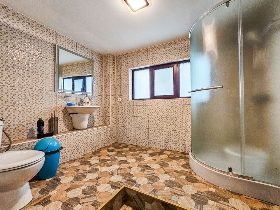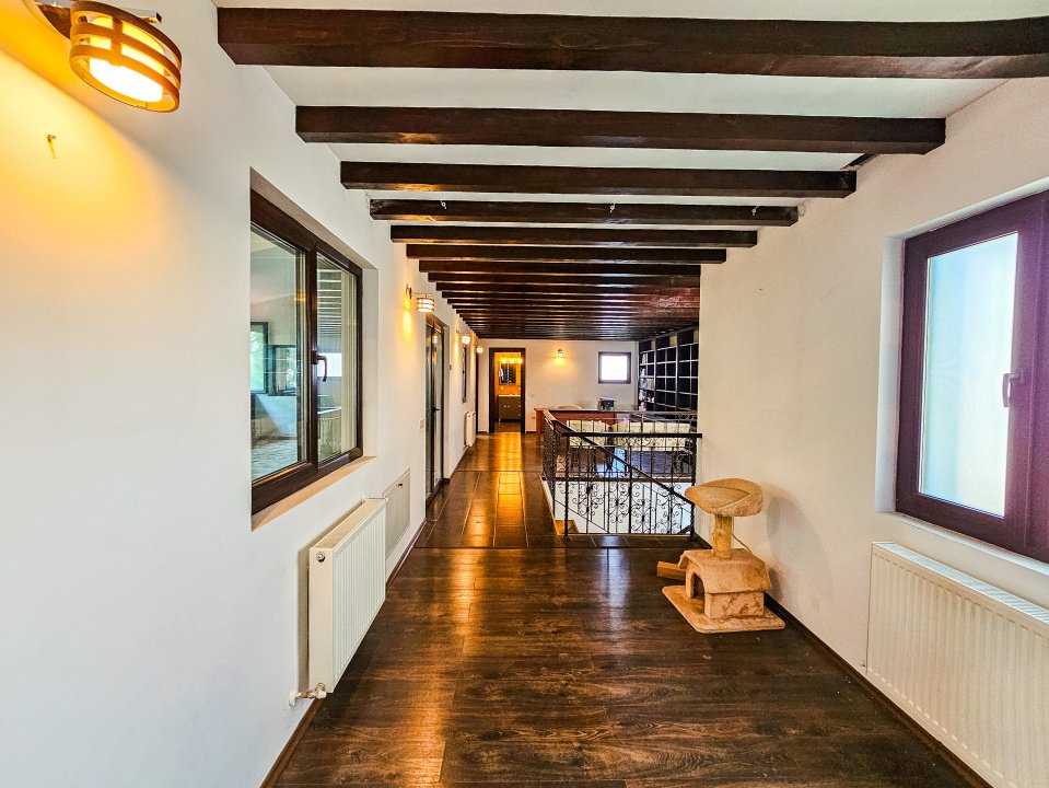 Dotări premium: parchet triplu stratificat, gresie porțelanată, obiecte sanitare premium, prize și întrerupătoare Gewiss, ferestre PVC duble, uși lemn masiv, corpuri iluminat lemn de Santal, obloane electrice, plase țânțari, izolare termică mansardă, centrală 65 kW cu două rezervoare de apă, garaj cu telecomandă.