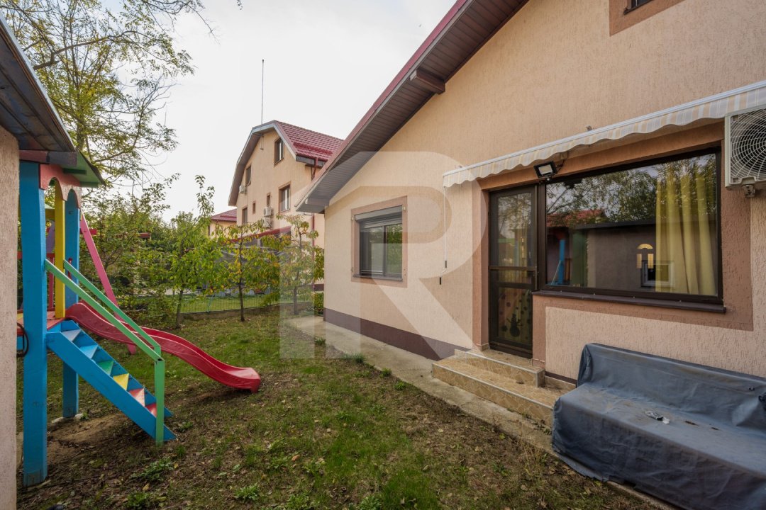 Lot perfect dimensionat, curte amenajata cu casuta de gradina si loc joaca.