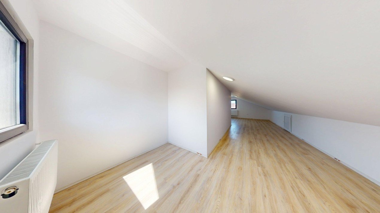 Mansardă locuibilă: spațiu generos, adaptabil ca open-space (birouri, sală de curs, atelier sau spațiu de relaxare)