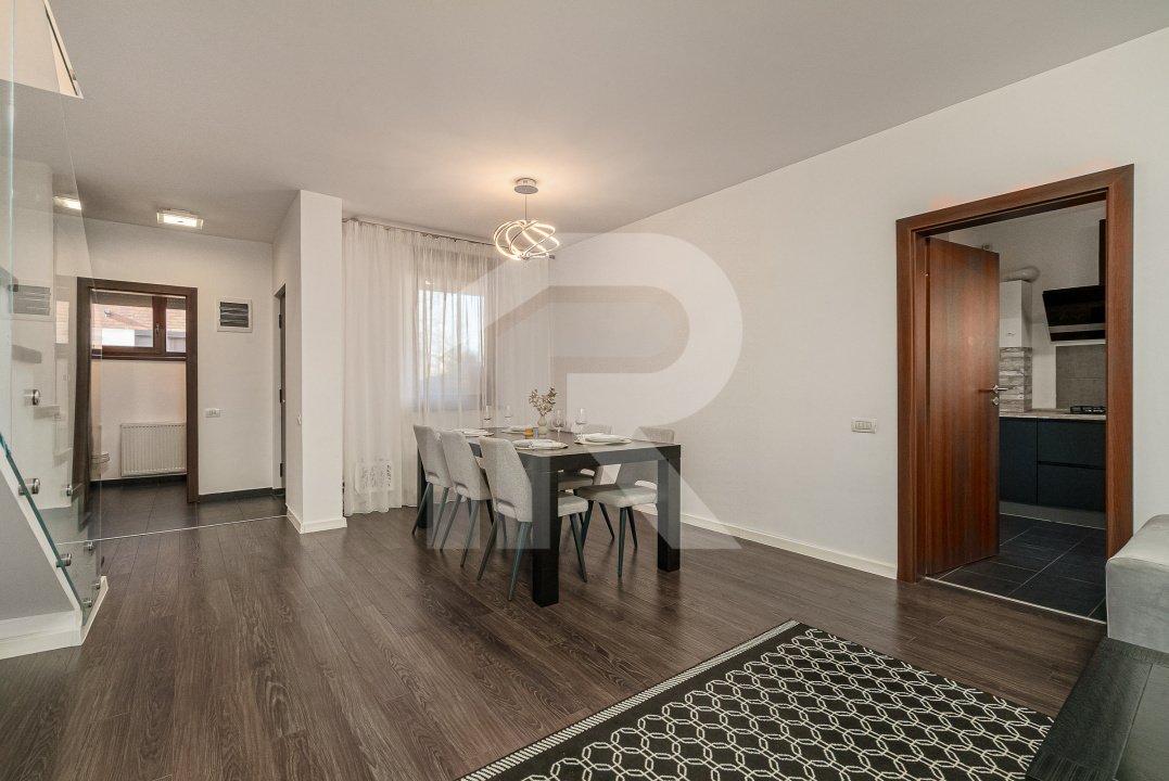 Interiorul este complet mobilat și renovate recent cu finisaje moderne, iar dotările precum centrala proprie, aerul condiționat, ferestrele PVC cu roluuri și sistemul de alarmă asigură un confort ridicat în fiecare zi.